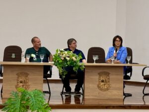 A Secretária Estadual da Mulher, Fabia Richter, abriu a pauta com a apresentação das ações da recém-criada Secretaria da Mulher, destacando desafios do interior no enfrentamento à violência doméstica e anunciando a campanha estadual de conscientização sobre feminicídio, que inicia em 3 de dezembro.