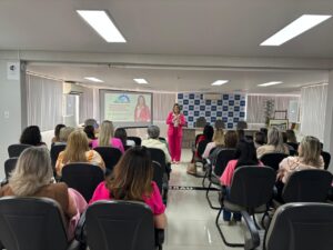 Durante o encontro, as participantes acompanharam a palestra “Mulheres no Poder Inspirando Prevenção”, ministrada pela Dra. Luciane Sippert, que abordou o papel da mulher na liderança e na promoção da prevenção e do autocuidado.